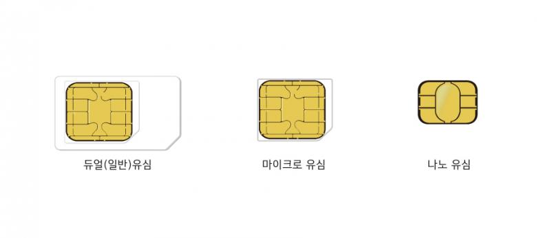 일반유심, 마이크로유심, 나노유심 3가지이구요