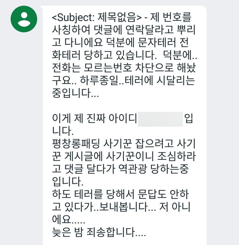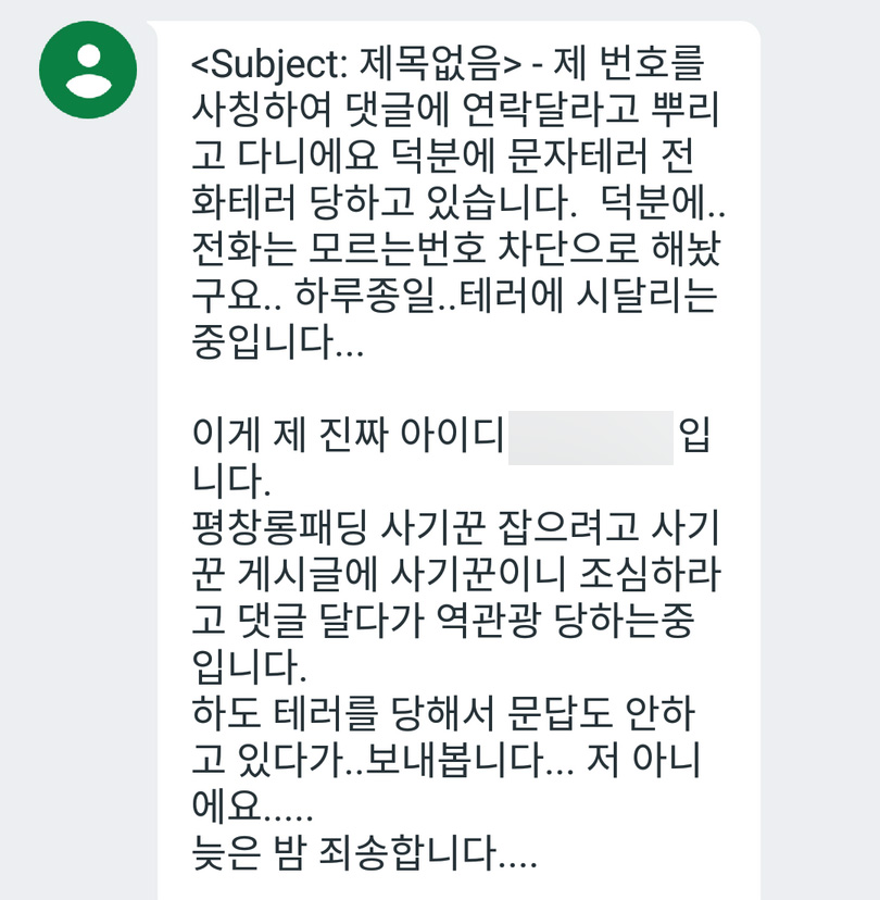 연락처를 알아낸 다음에 무작위로 아무 판매글에나 가짜 구매리플 다는것 같은데..