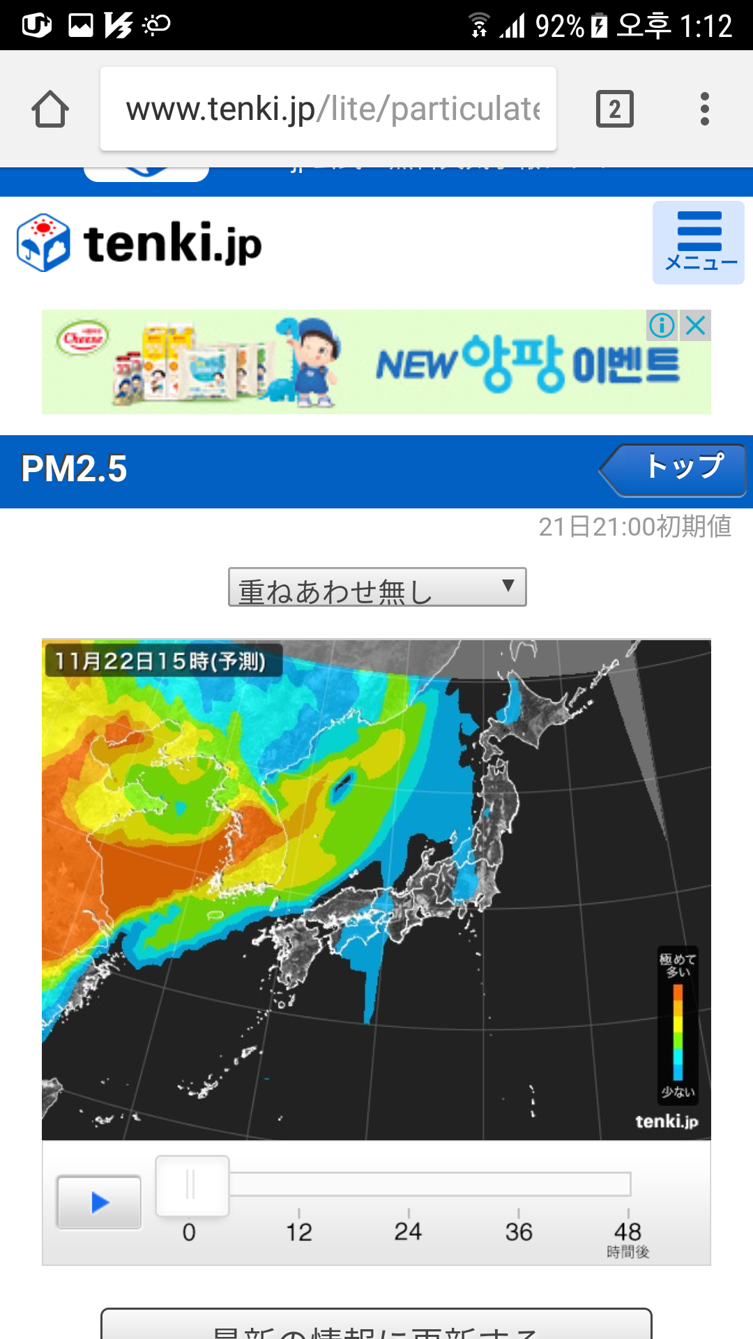 일본기상협회 화면으로 보면 미세먼지가