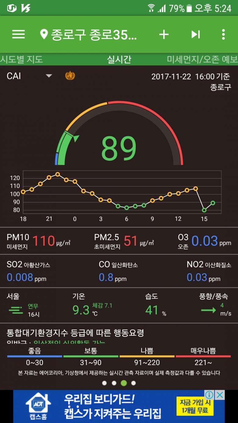 지금은 그냥 미세미세 어플 씁니다. 지금 최악으로 나와요.