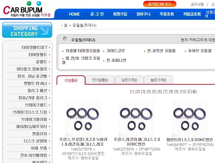 몇년전 체크할때만 해도 크랭크쉐프트 오일씰(리데나) 가격이 개당 만원 안팎