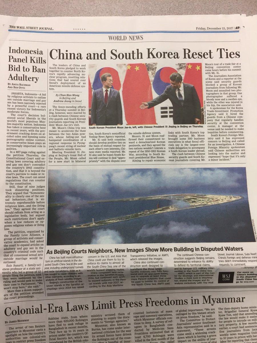 1. 월스트리트저널 : 한국과 중국관계를 재설정하다.