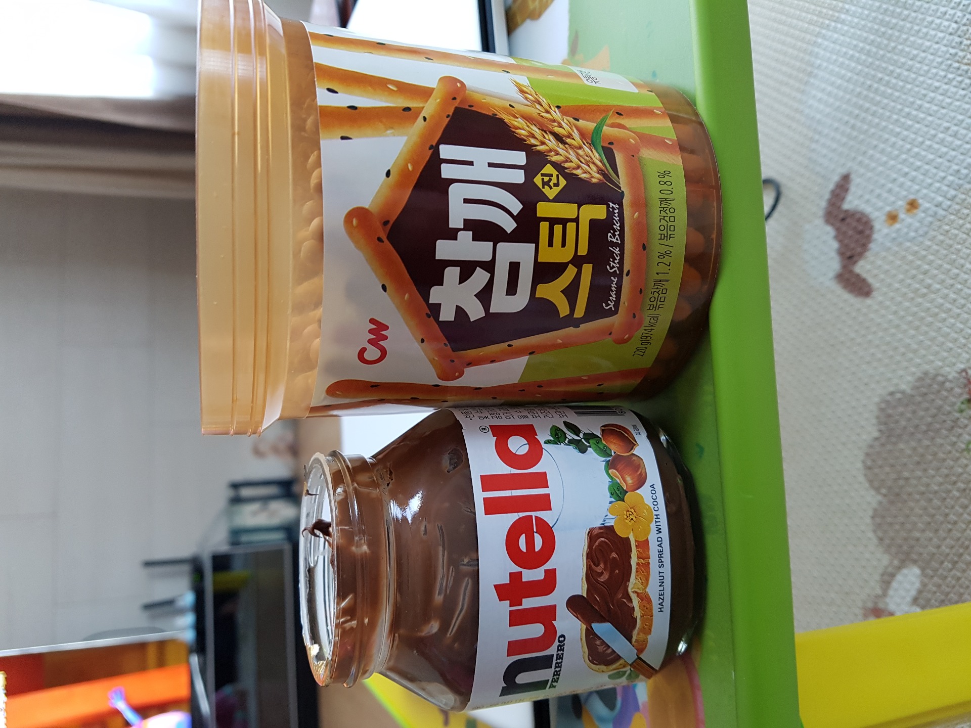저는 참깨스틱 큰 통에 노브랜드 헤이즐럿초코시럽인가 사다놨는데 참깨스틱만 열심히 먹고 있어요
