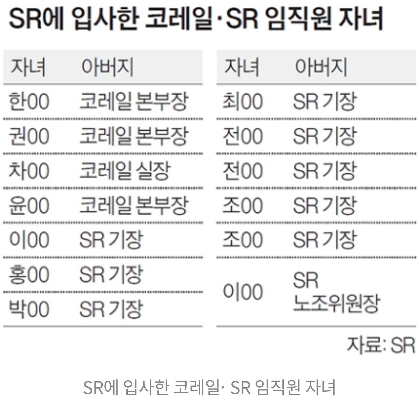 다 똑같은 나쁜 사람들인데 제일 눈에 띄는건 깨알같은 노조위원장 자녀.....ㅎㅎㅎ