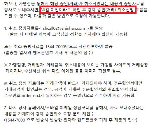 취소내역 어디로 보내나요?? 신한카드 고객센터로 하면될까요? |