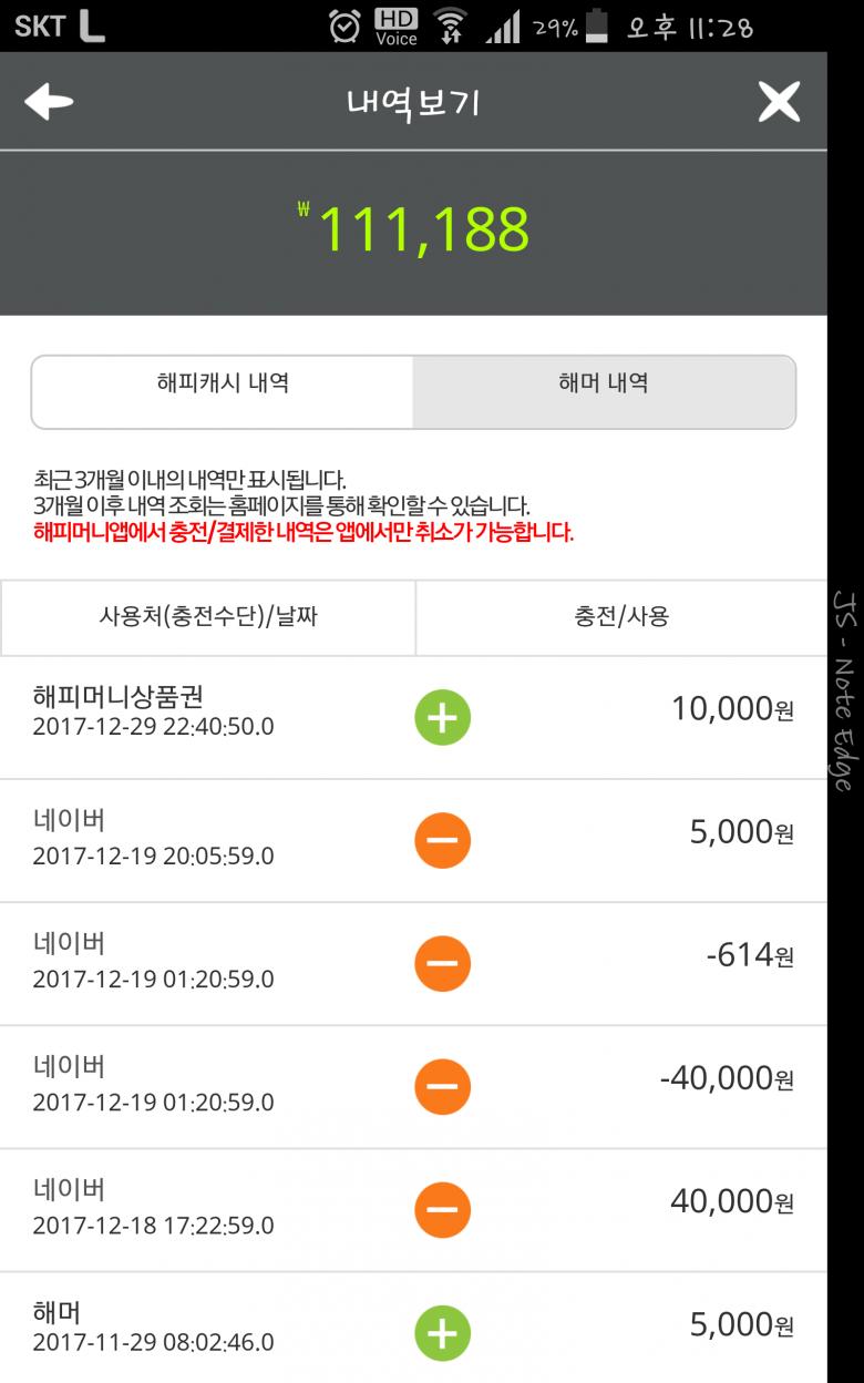해피머니앱 확인하니 포인트 차감내역이 없네요;;