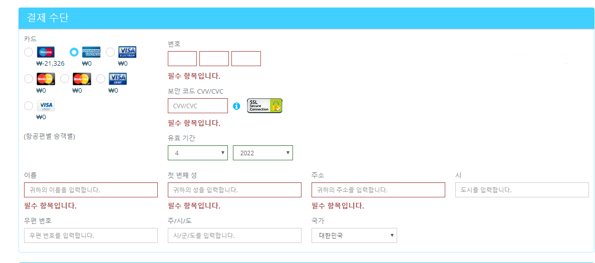 비행기 예매하려고하는데 외국에 살고있어서 지금 살고있는곳 주소를 적어야 하는지