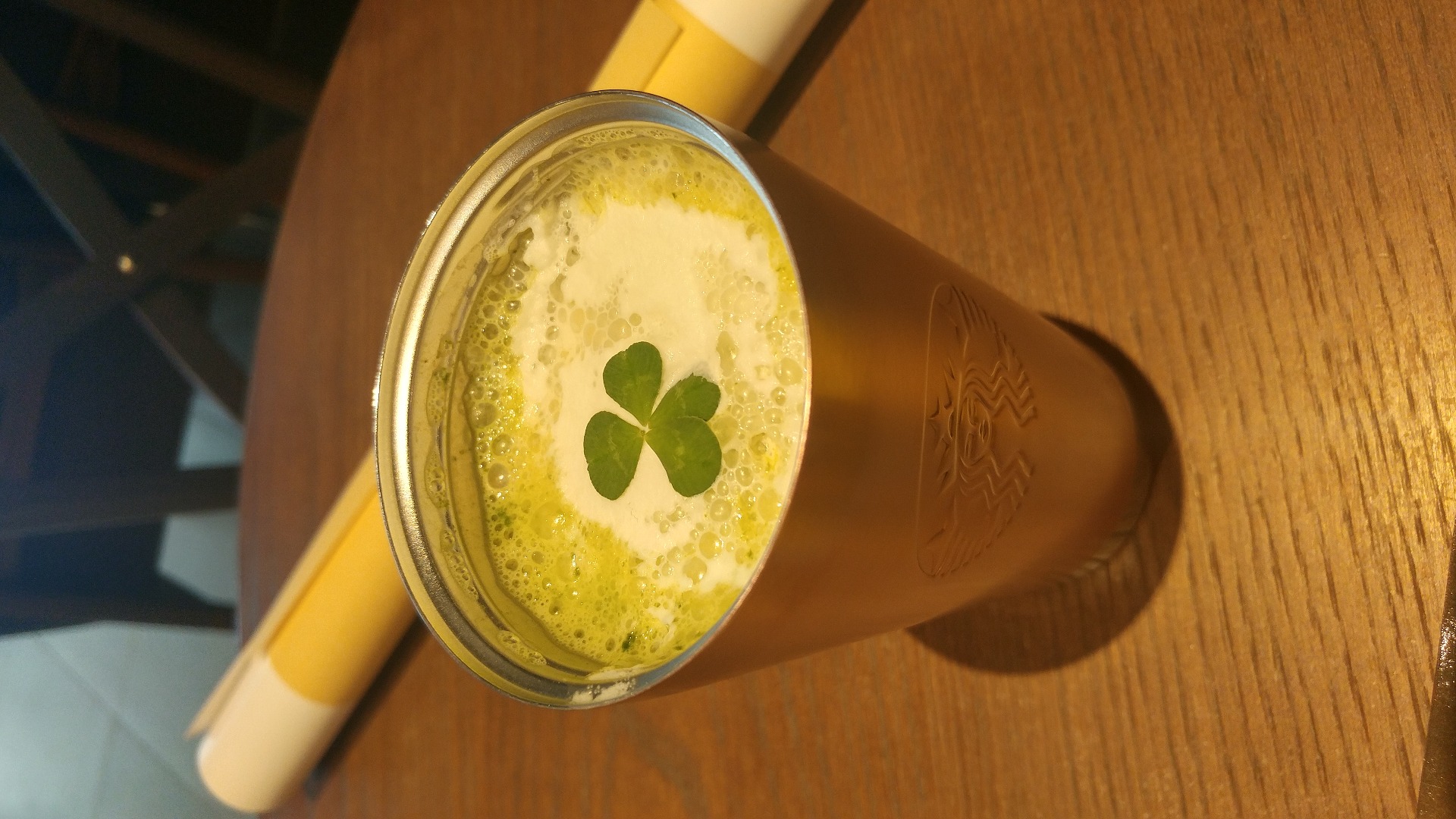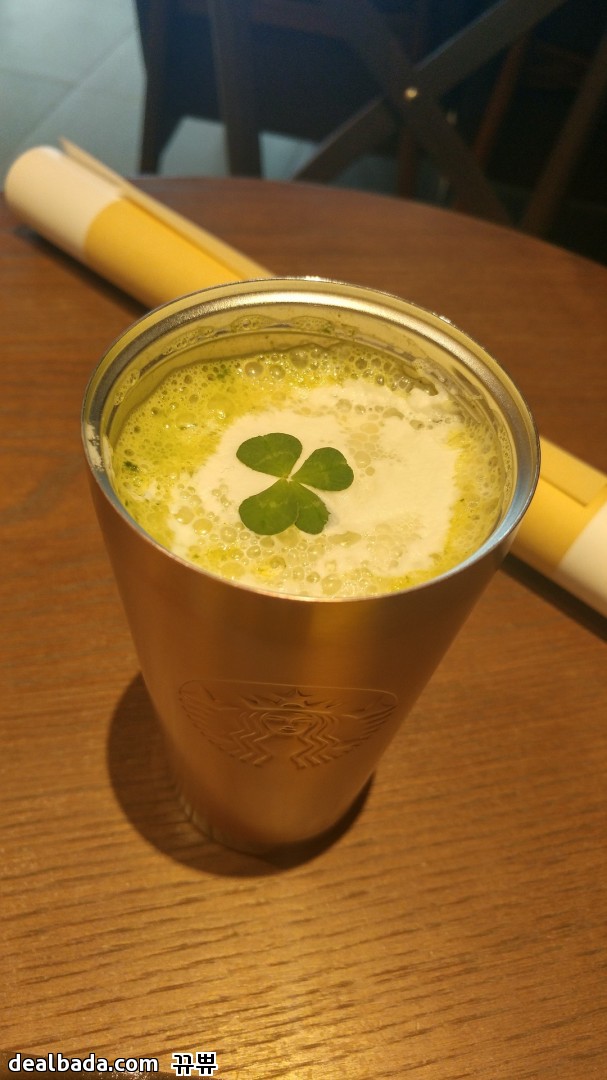 젤 무난해보이는 오트 그린티 라떼? 시켰는데 맛있어요. 위에 귀여운 네잎클로버도 띄워줘요 ㅎㅎ