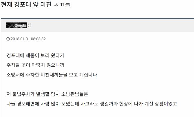 '경포119안전센터는 새해 첫날 외지 관광객들에 의해 발생한 일인 만큼, 과태료 부과 없이 계도 및 주의조치를 했다'