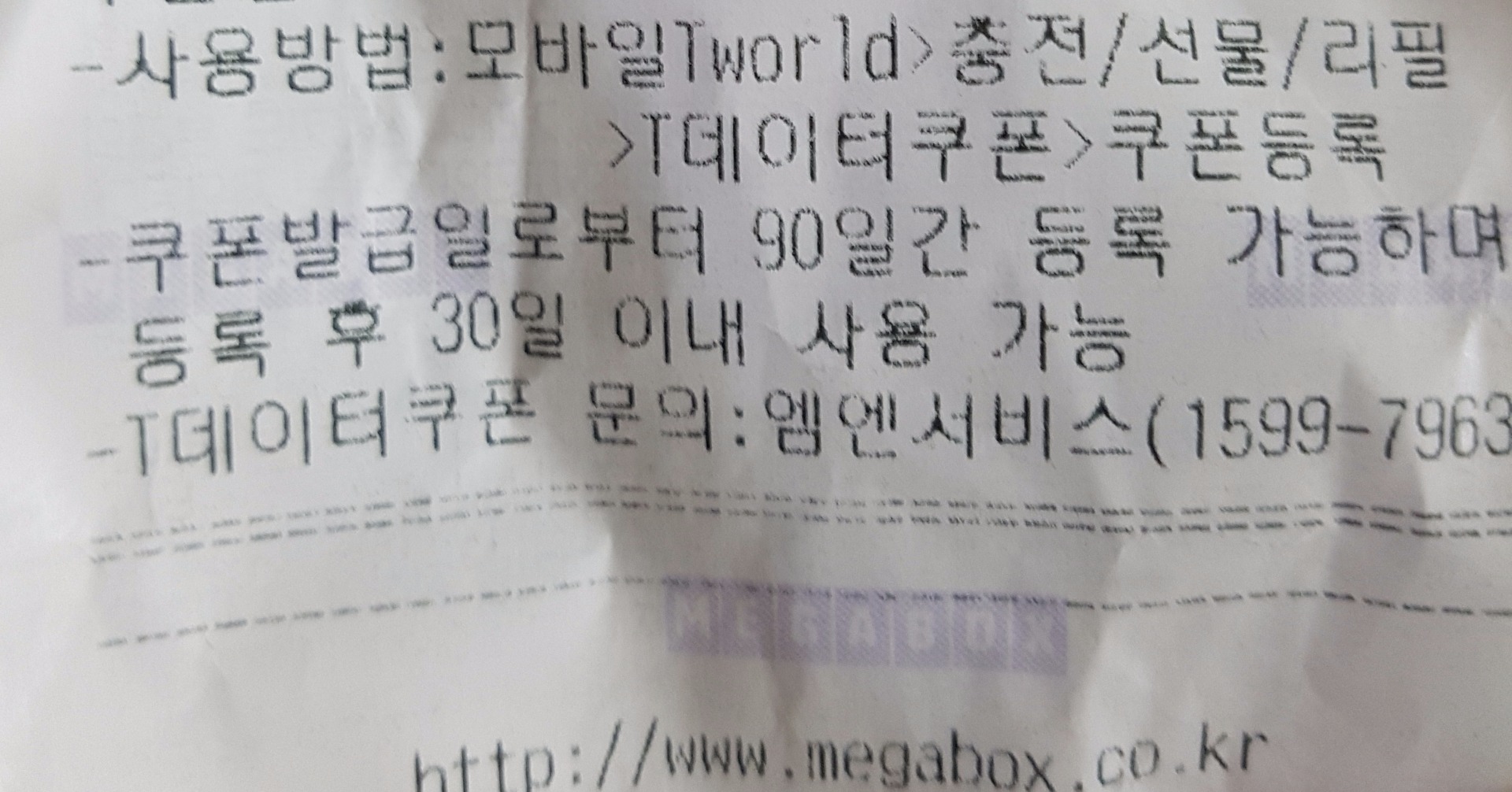 메가박스 영화 보고나니 영수증에 데이터 쿠폰 번호 세개가 있네유.