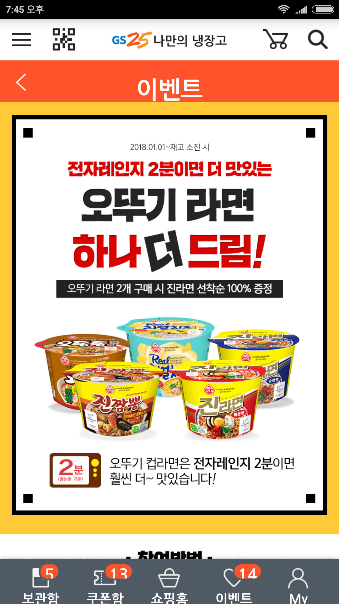 나냉에 오뚜기라면 2개사면 하나 증정하는 이벤트가 있더라구요