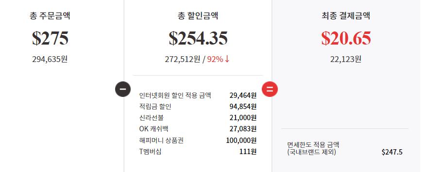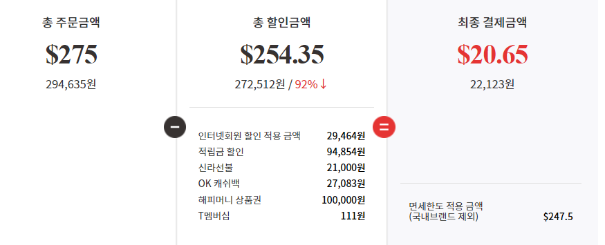 나름 모든혜택 다 긁어모아서 결제했더니