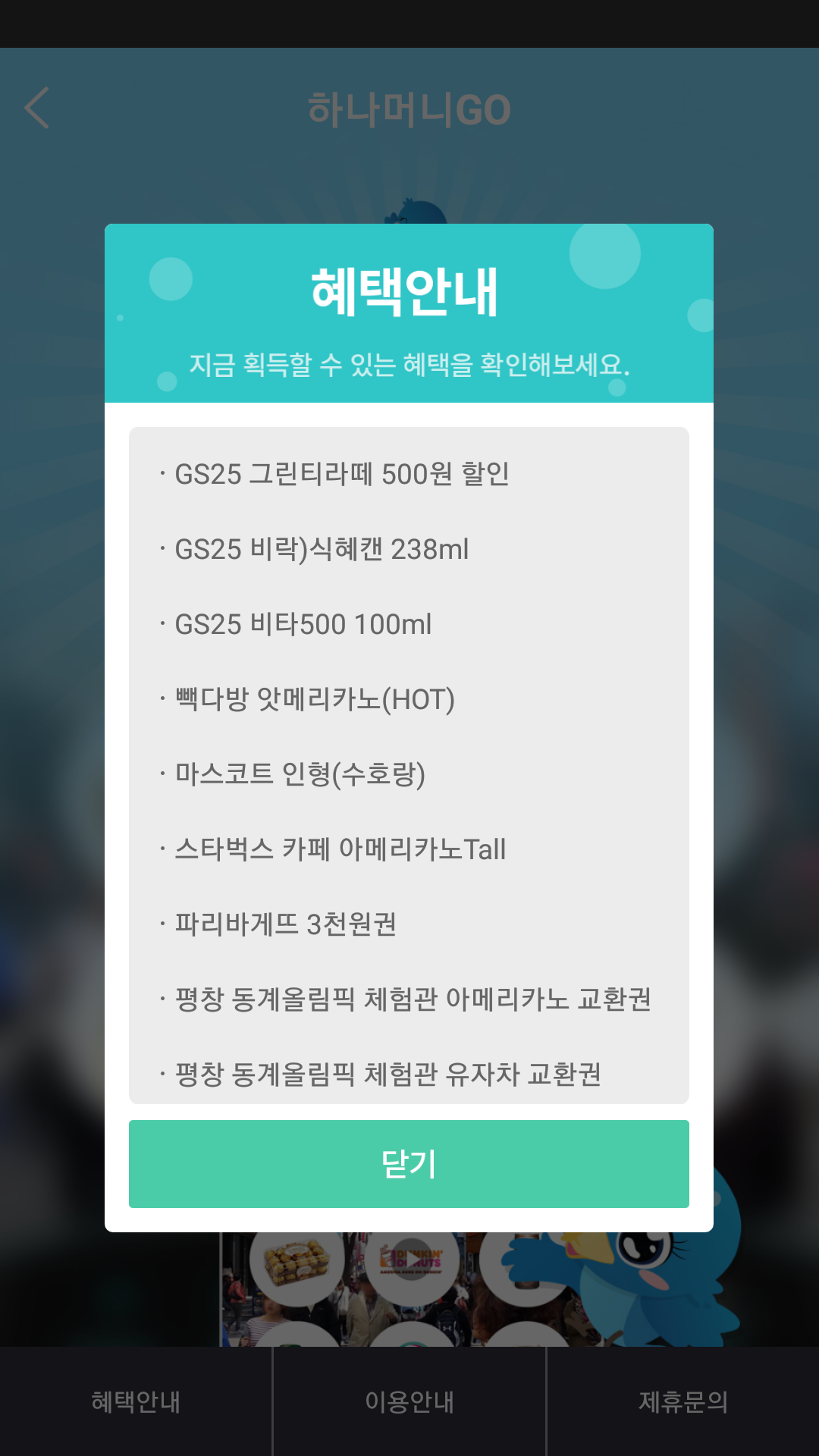혜택내역에 보면 스벅도 있고 파바 3천권도 있고 입장권도 있는데