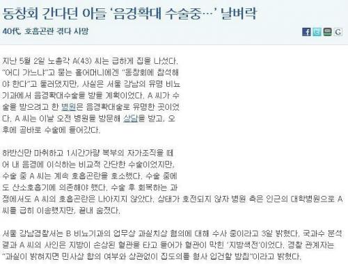 동창회 간다던 아들이 음경확대 수술받다 사망 ㄷㄷㄷ 진짜 날벼락이네요 ㅠㅠ