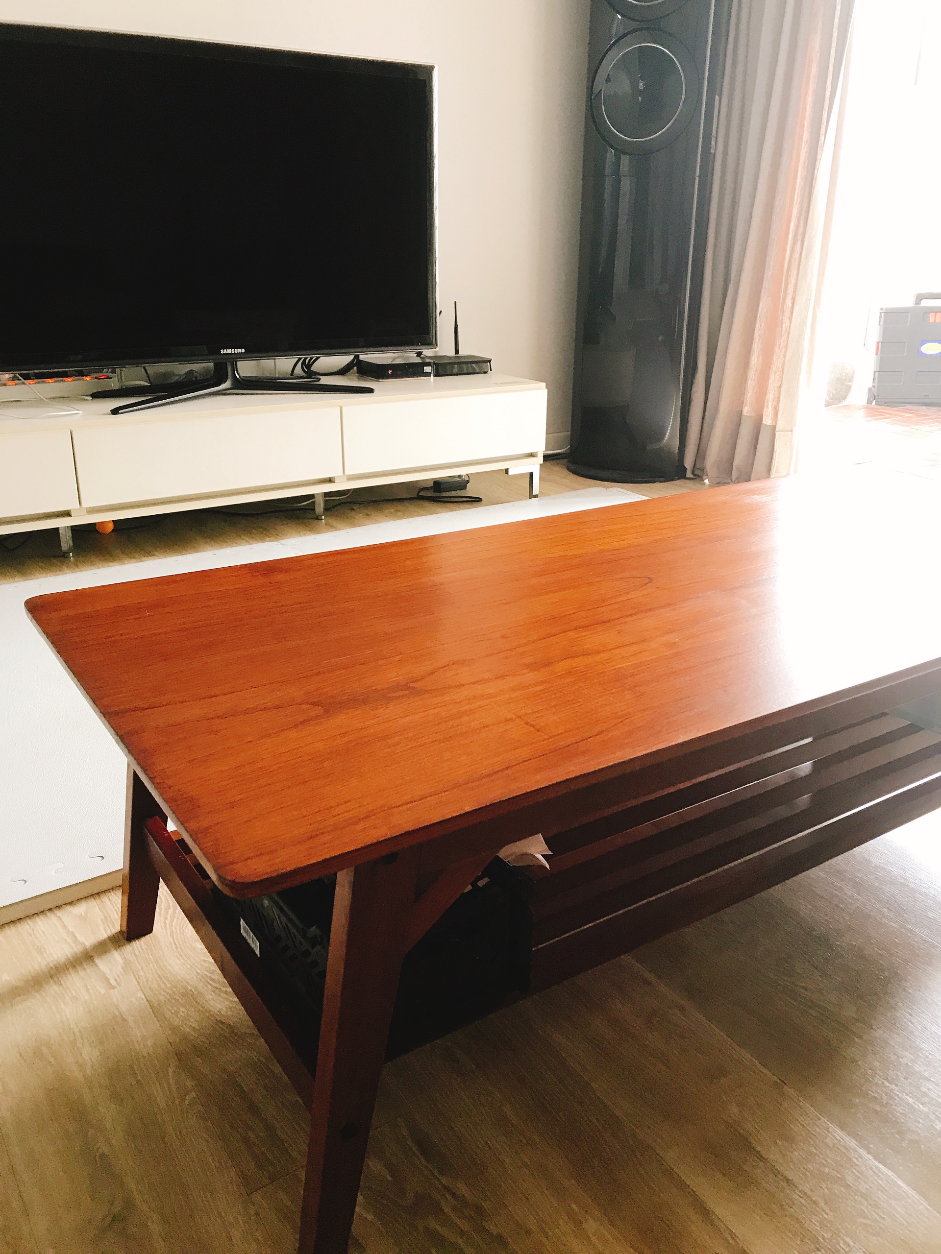 구입한지는 6년 넘어가는 탁자, 겸사 때 좀 벗겨 줄겸, 사포로 벗겨주고, 우드스테인 네번정도 발라서 다리랑 색 맞춰 줬어요.