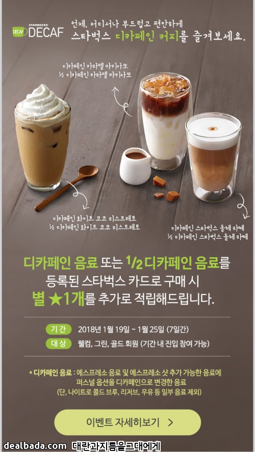 오늘부터는 디카페인 추가적립하네요