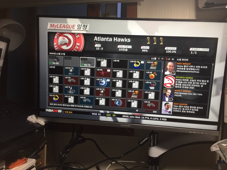 넵.ㅎ NBA2k18 입니다.ㅎㅎ 피씨로.그냥 리그 경기만 하고있어요.