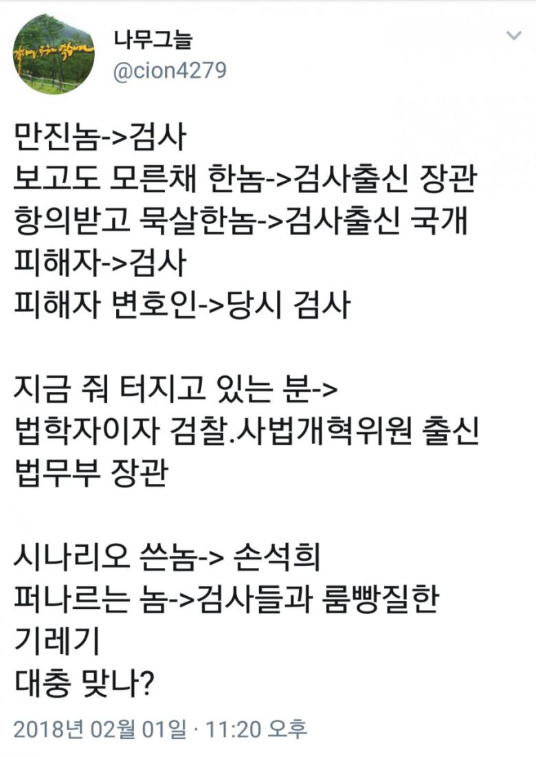 본질은 안태근이랑 최교일 + 지난 9년 간의 검찰 적폐들이지 현재 장관이 아닌데 자꾸 물타기하고 방향을 바꿀려고 기레기들이 엄청 노력하더군요.