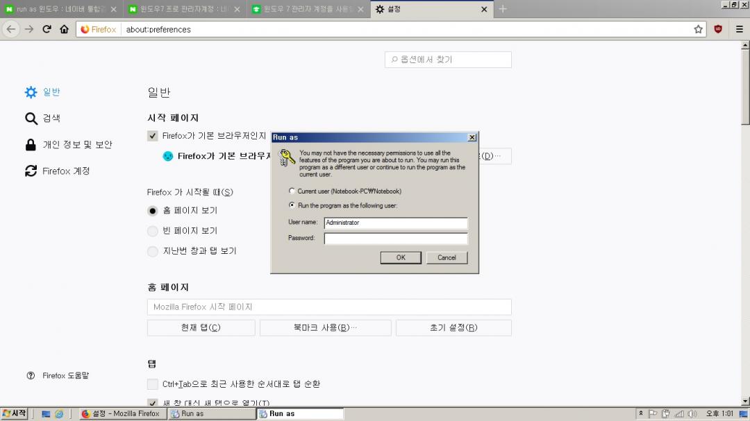 검색해보니 다른 계정을 지우고 관리자 계정을 활성화 시키라는데 다른 계정은 없고 이게 관리자계정이거든요