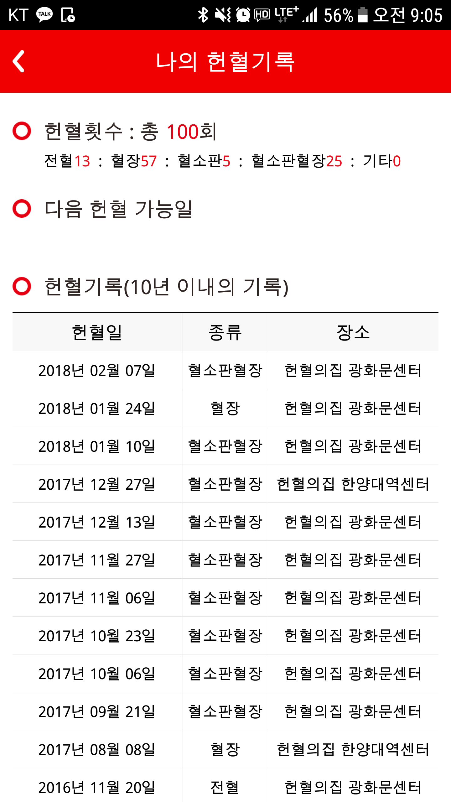 헌혈 목표가 100번이었는데..
