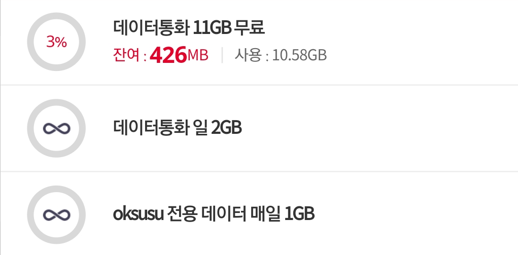 항상 데이터 2~3기가 남아서 못쓰고 버렸는데...