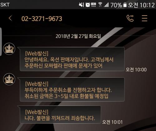 옥션 모짜렐라 치즈 2.5키로 취소한다고 문자 왔네요