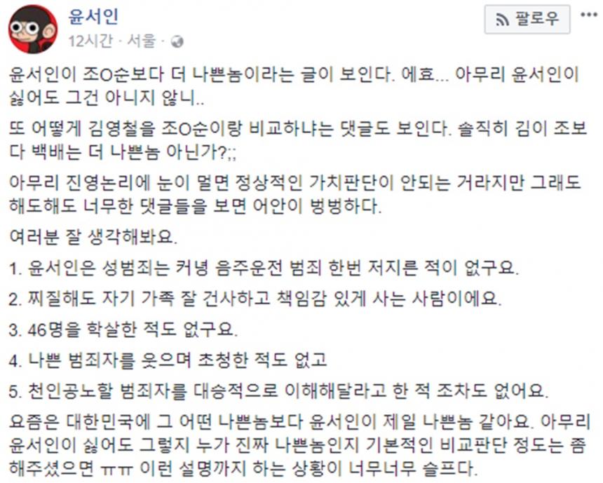 링크는 조두순 피해자와 가족을 조롱한 윤서인 처벌을 위한 청와대 청원 링크입니다.