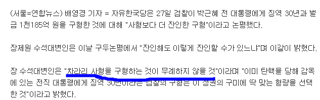 기레기들이 장제원, 박근혜 사형 찬성 이렇게 제목 뽑았으면 좋겠... 하지만 그럴리 없겠죠 |