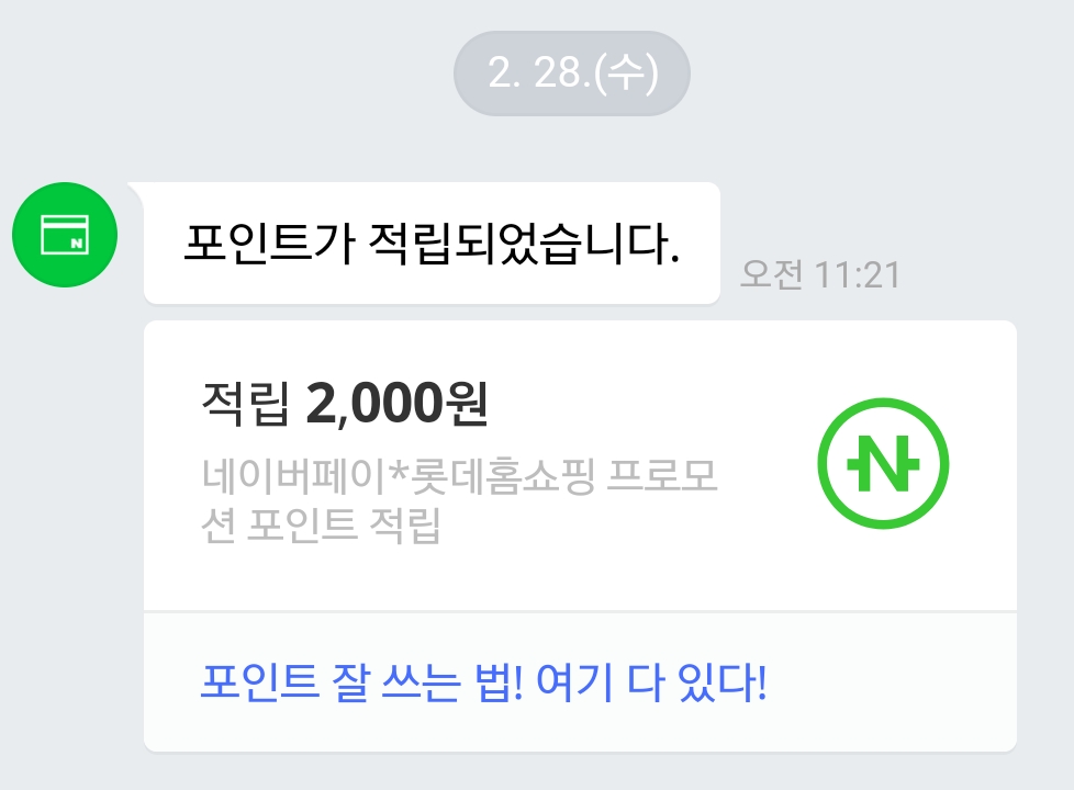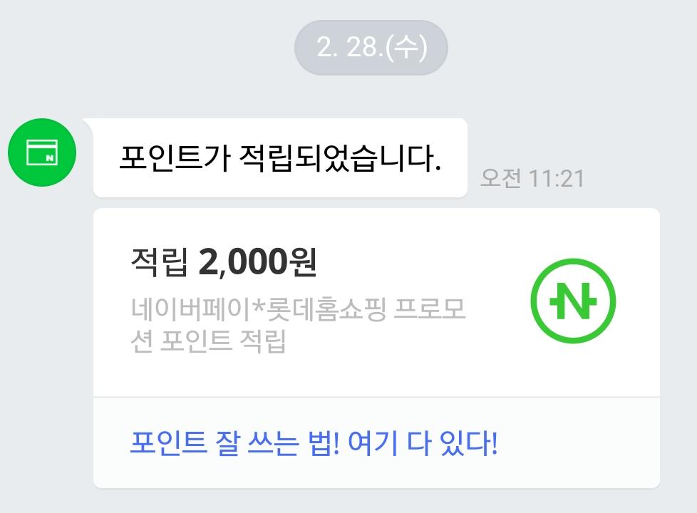 롯데홈쇼핑 네이버페이 2천원 적립됐네요 > 자유게시판