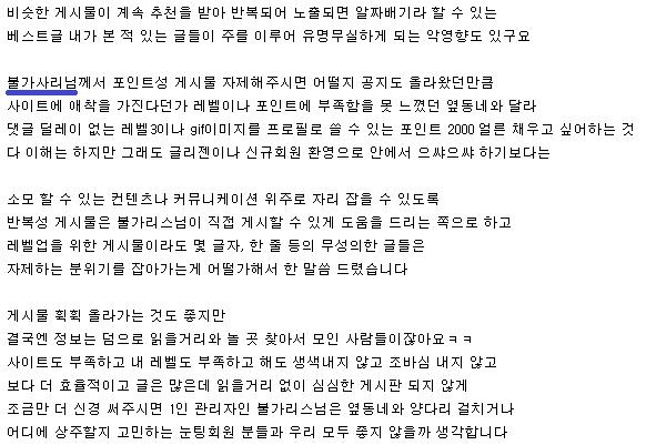 불가사리님께서 포인트성 게시물 자제해주시면 어떨지 공지도 올라왔던만큼
