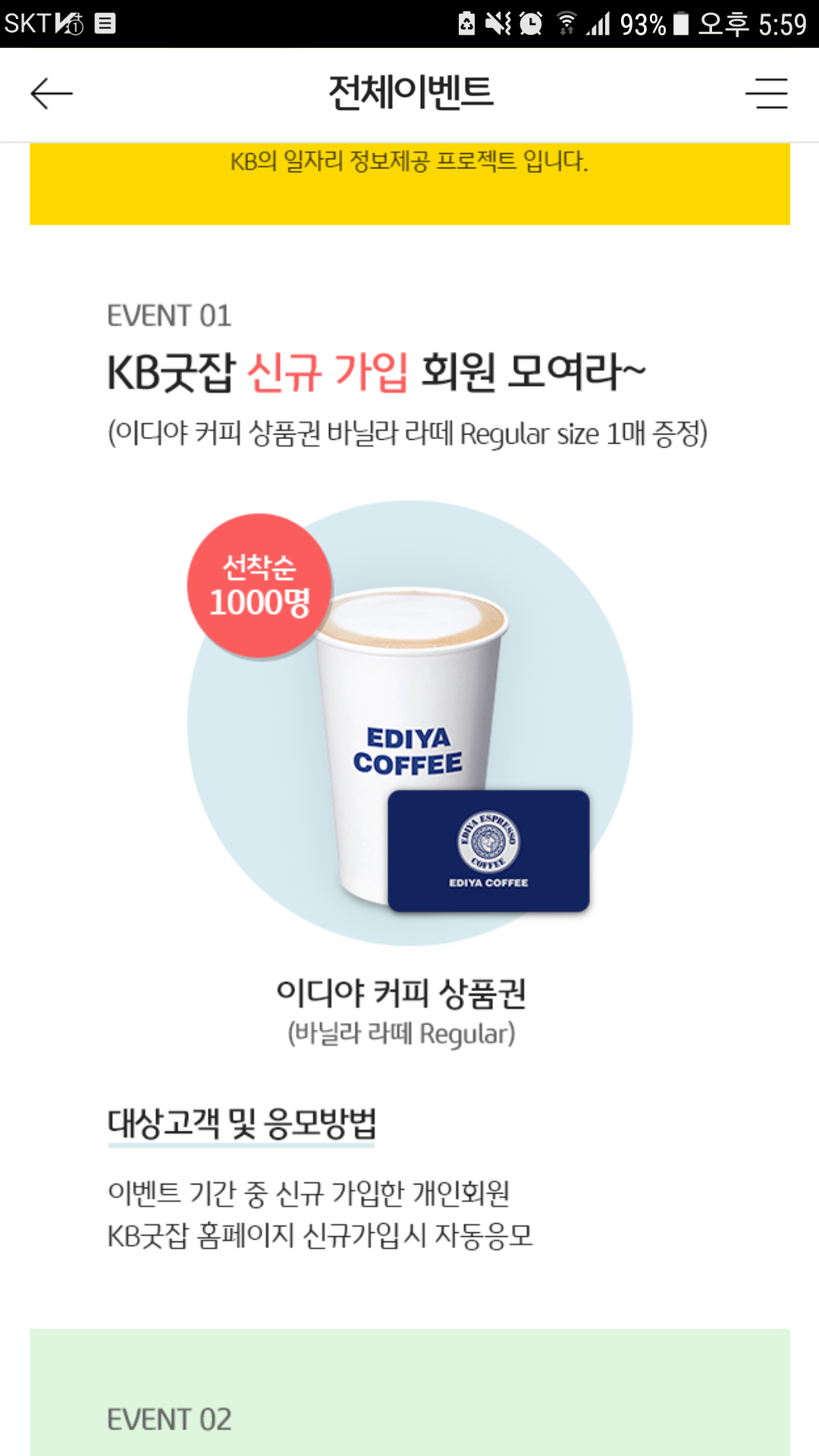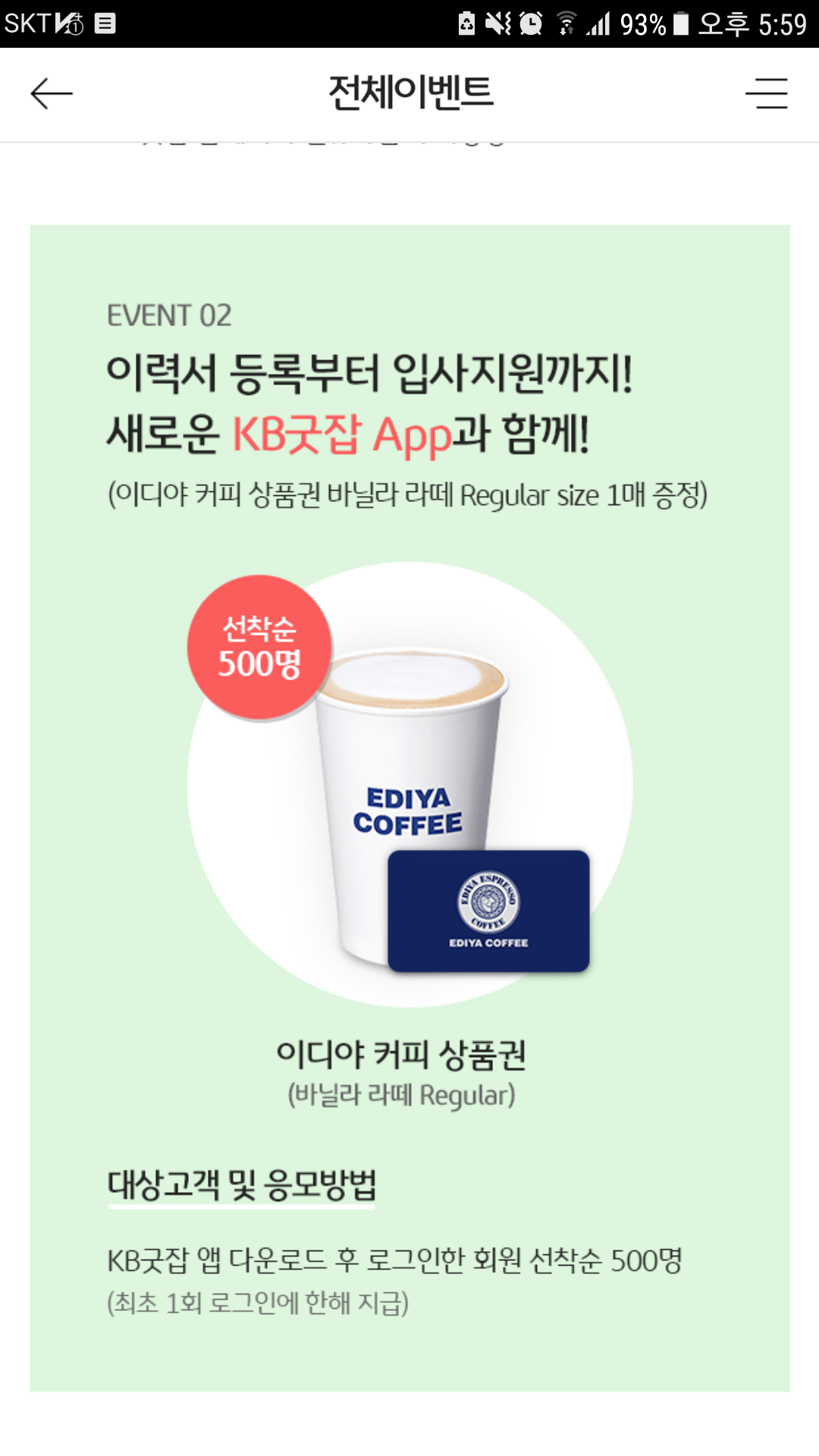 1) 신규가입 1천명과 2)어플로긴 회원 5백명한테 이디야 바닐라라떼 줍니다.