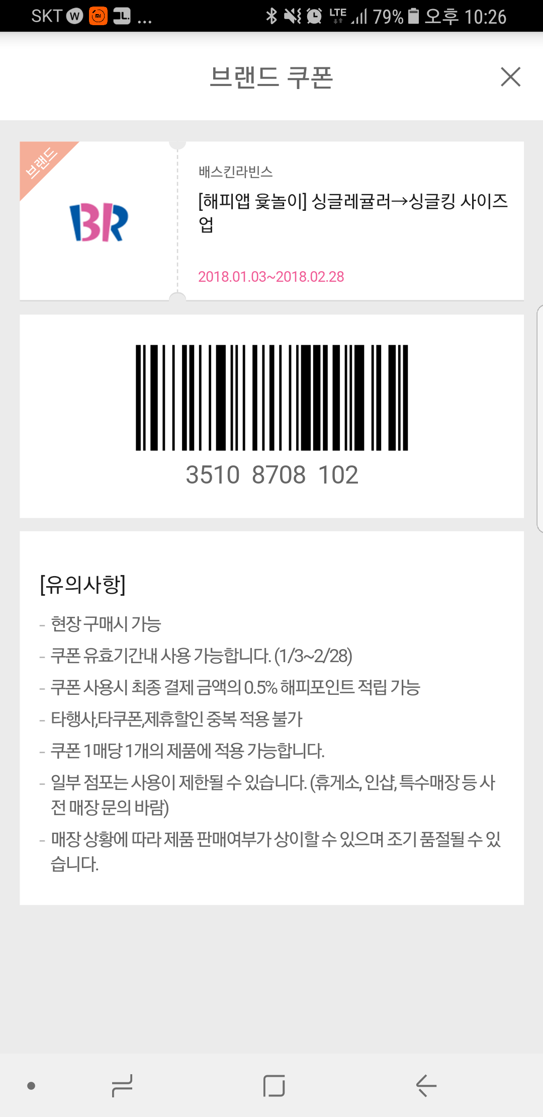 고래의꿈님 배라 싱글레귤러 나눔해주신거에