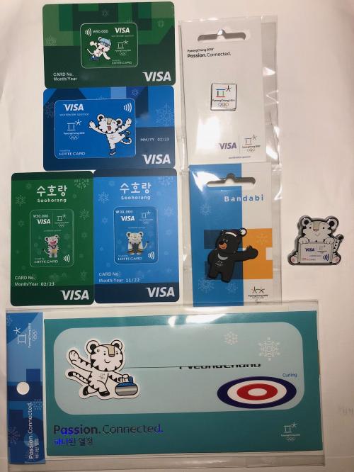 그리고 슈퍼스토어 뒷편 선불카드 자판기에서 구입한 비자 웨어러블 선불 카드 및 뱃지들을 모아봤습니다.