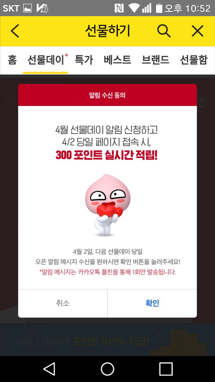 선물데이탭 누르면 1번사진 광고가 보이는데요