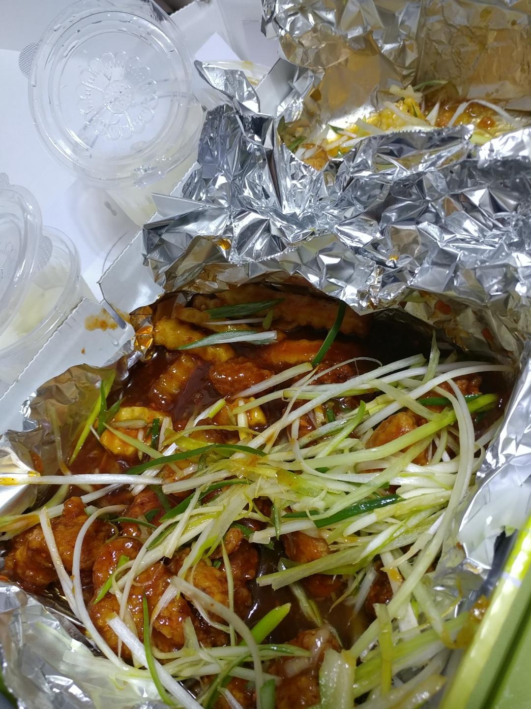 늦은 시간이라 문 연곳이 별로 없어서 고민하다가 파닭을 시켰습니다