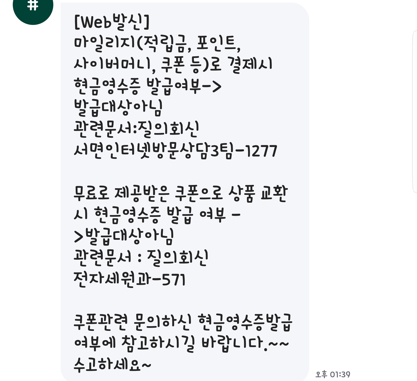 농협시럽카드의 주유쿠폰 현금영수증 문의드립니다.