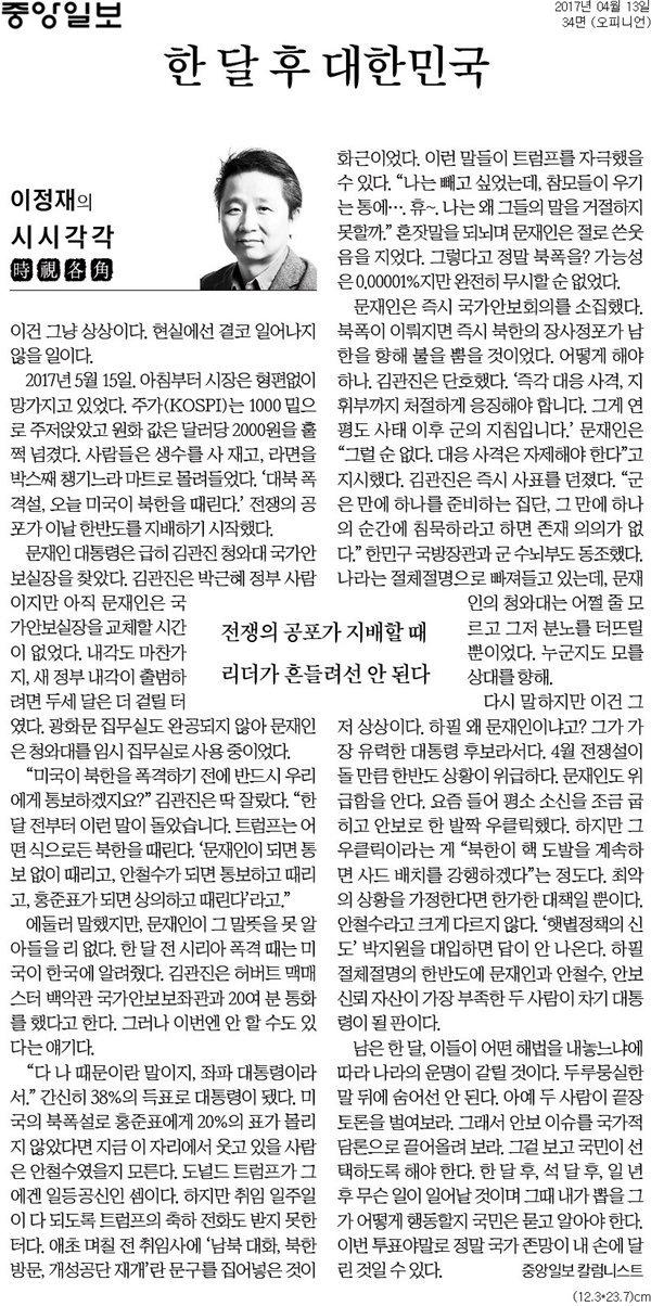 이 사람 아직도 칼럼 쓰네요. 반성이나 인정이란 단어를 모르는듯.