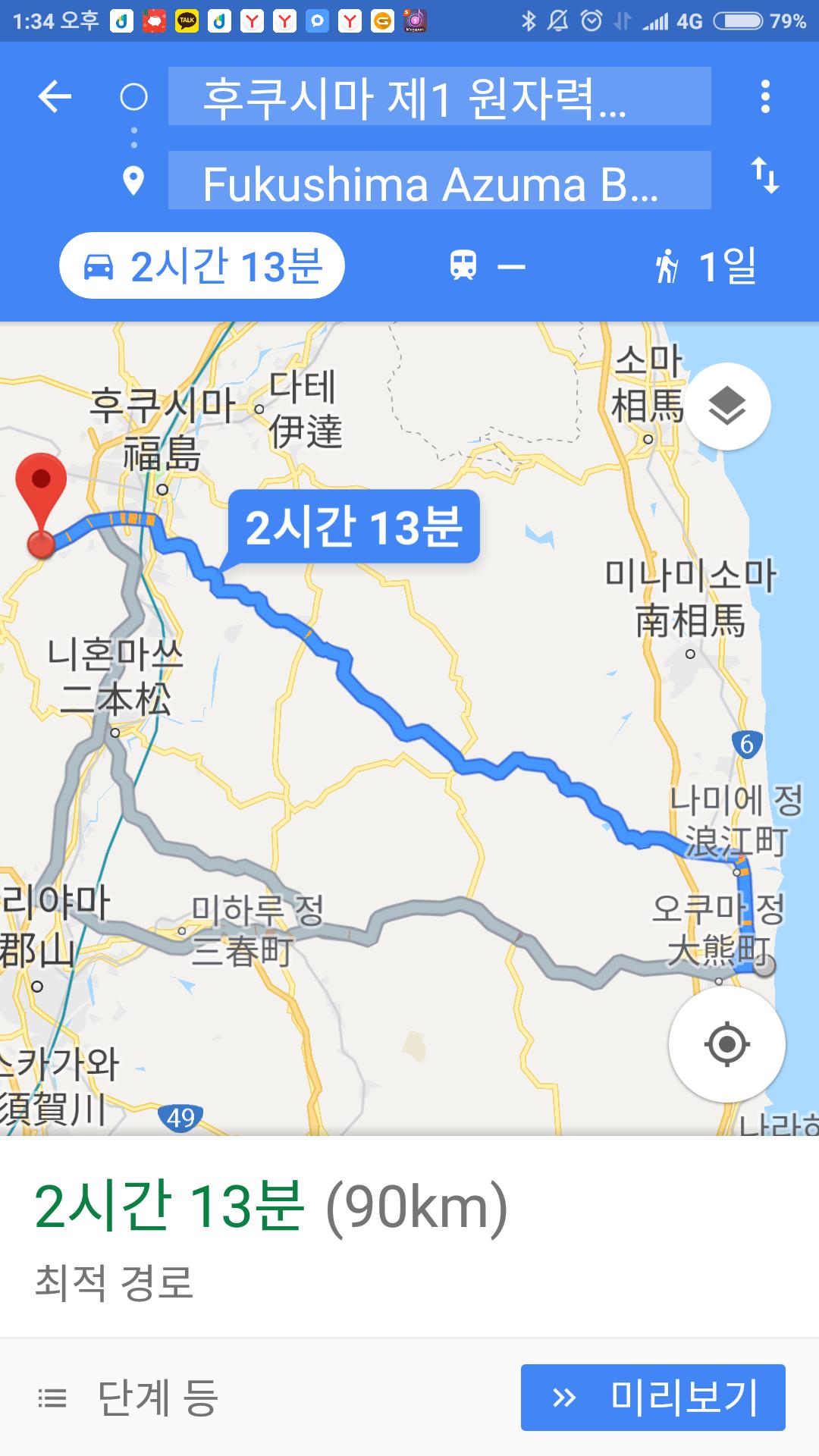 올림픽야구경기장과 원전의 거리 90km....