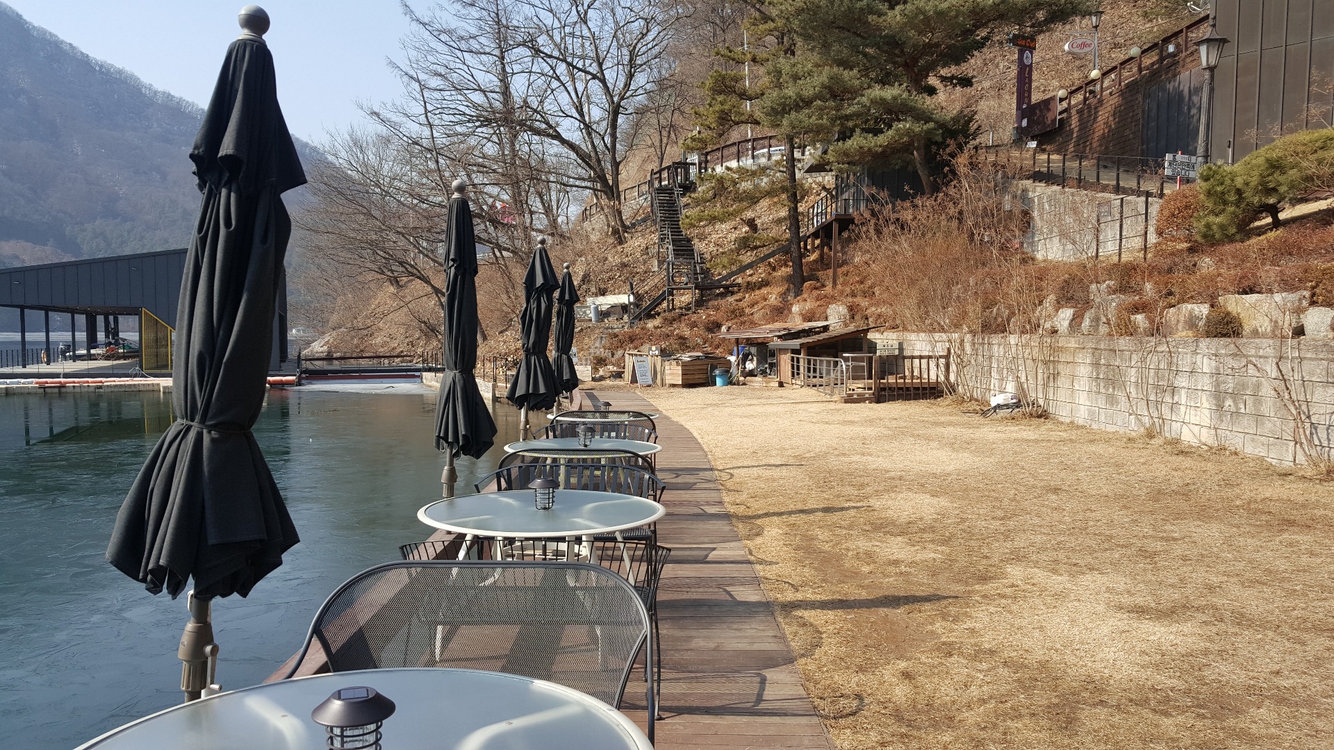 좀 더 봄바람 따뜻할 때 가면~ 수상스키 하는 사람들도 있고 강 위에 데크가 따로 있어서 분위기는 좋아요ㅎㅎ