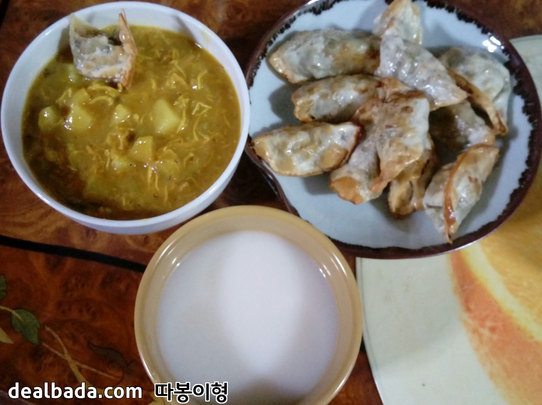 어젯밤에 카레 만들어둔 거 있어서 막걸리 꺼내서 한잔 합니다 ㅎㅎ