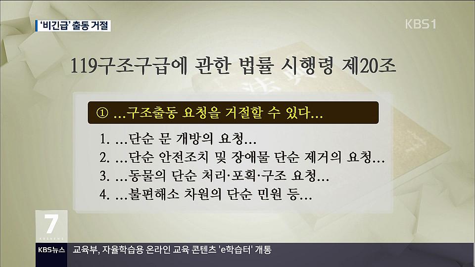 네.. 그러니까 2017년 7월 26일 부터 119 는 단순 문개방이라던지 동물처리등을 거부할수가 있었네요?