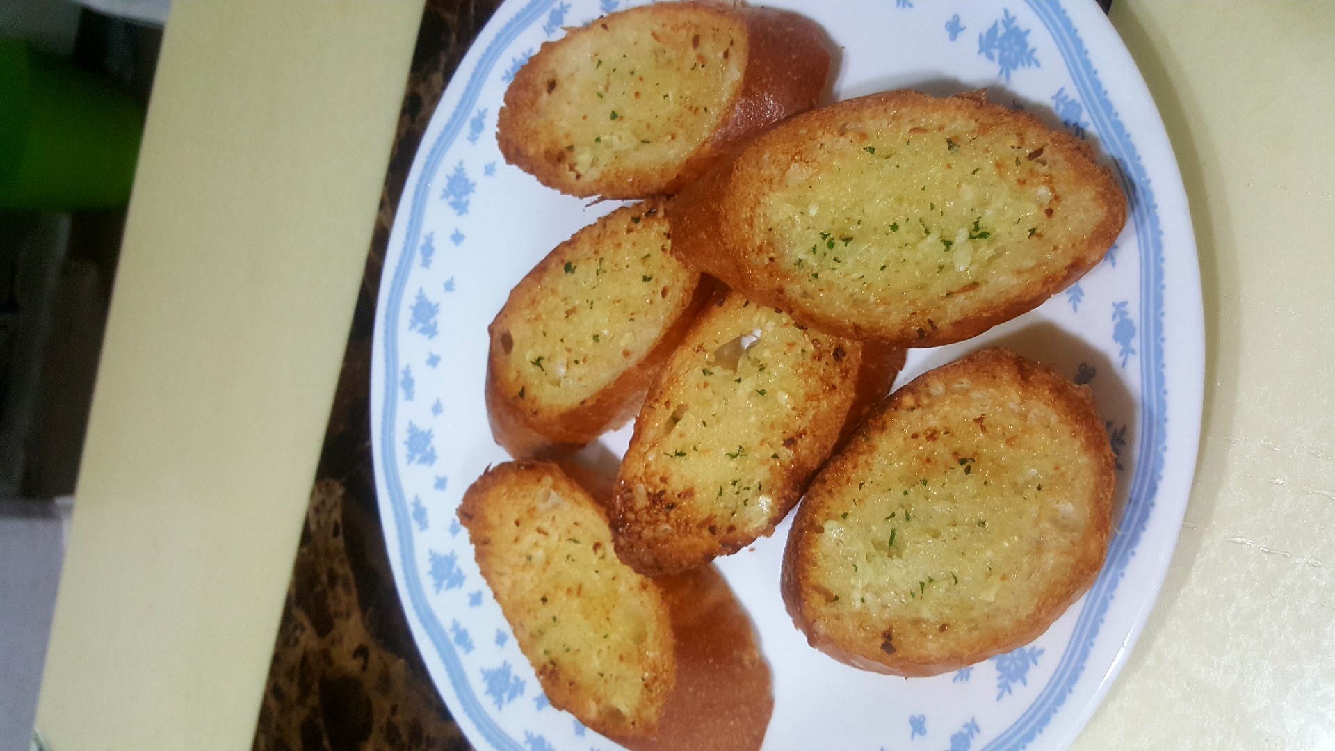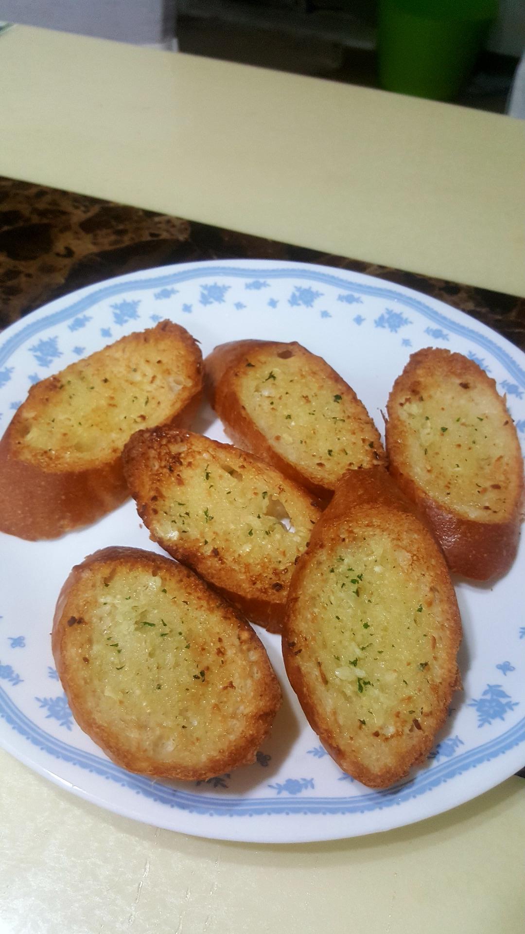 바게트빵만 있음 만들기 쉬워요..버터랑 올리고당 다진마늘 파슬리가루 섞어서 빵에 발라서 굽기만 하면 되거든요..^^ |