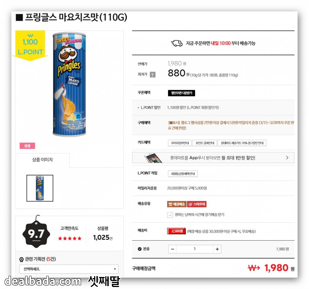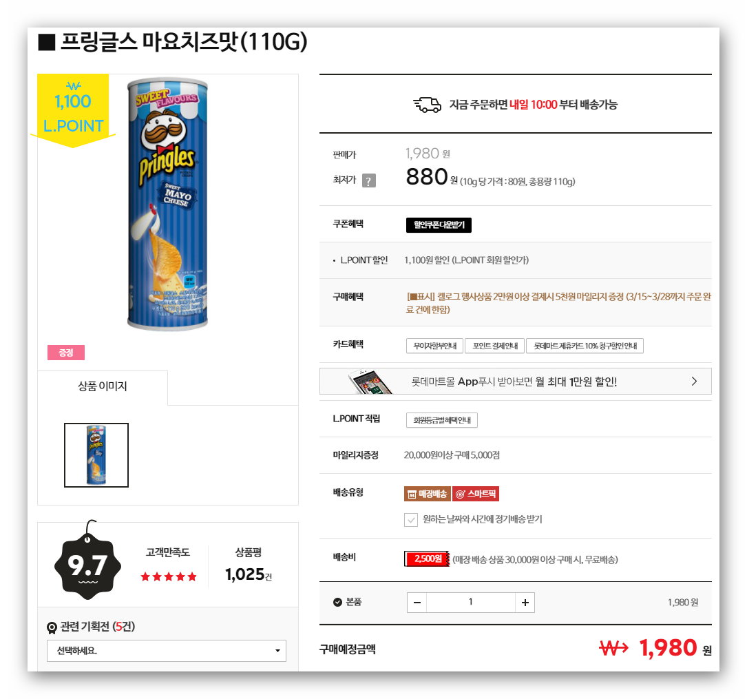 롯데마트, 프링글스 마요치즈맛 싸네요