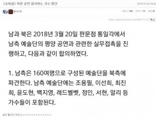 한국가수 방북공연에 대한 에펨코리아의 반응 > 자유게시판