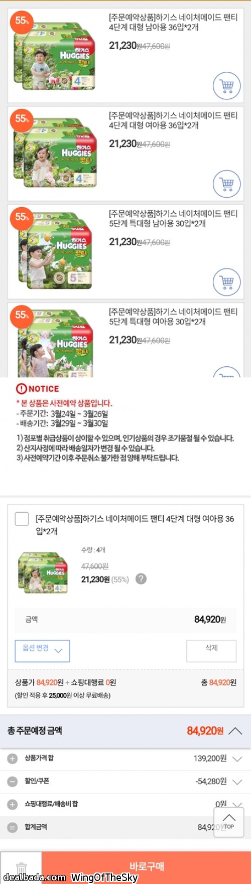 GSfresh앱 네이처메이드 팬티 기저귀 (4~5단계)사전예약행사 (55% ↓)