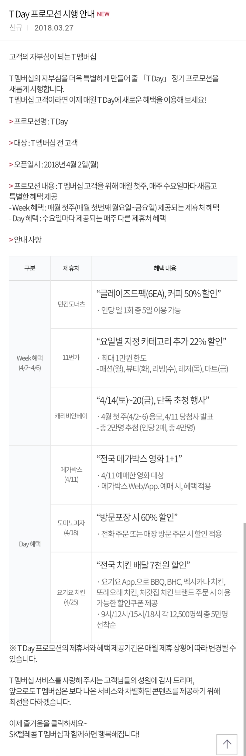 T멤버십 T Day 프로모션 이라고 합니다. > 자유게시판