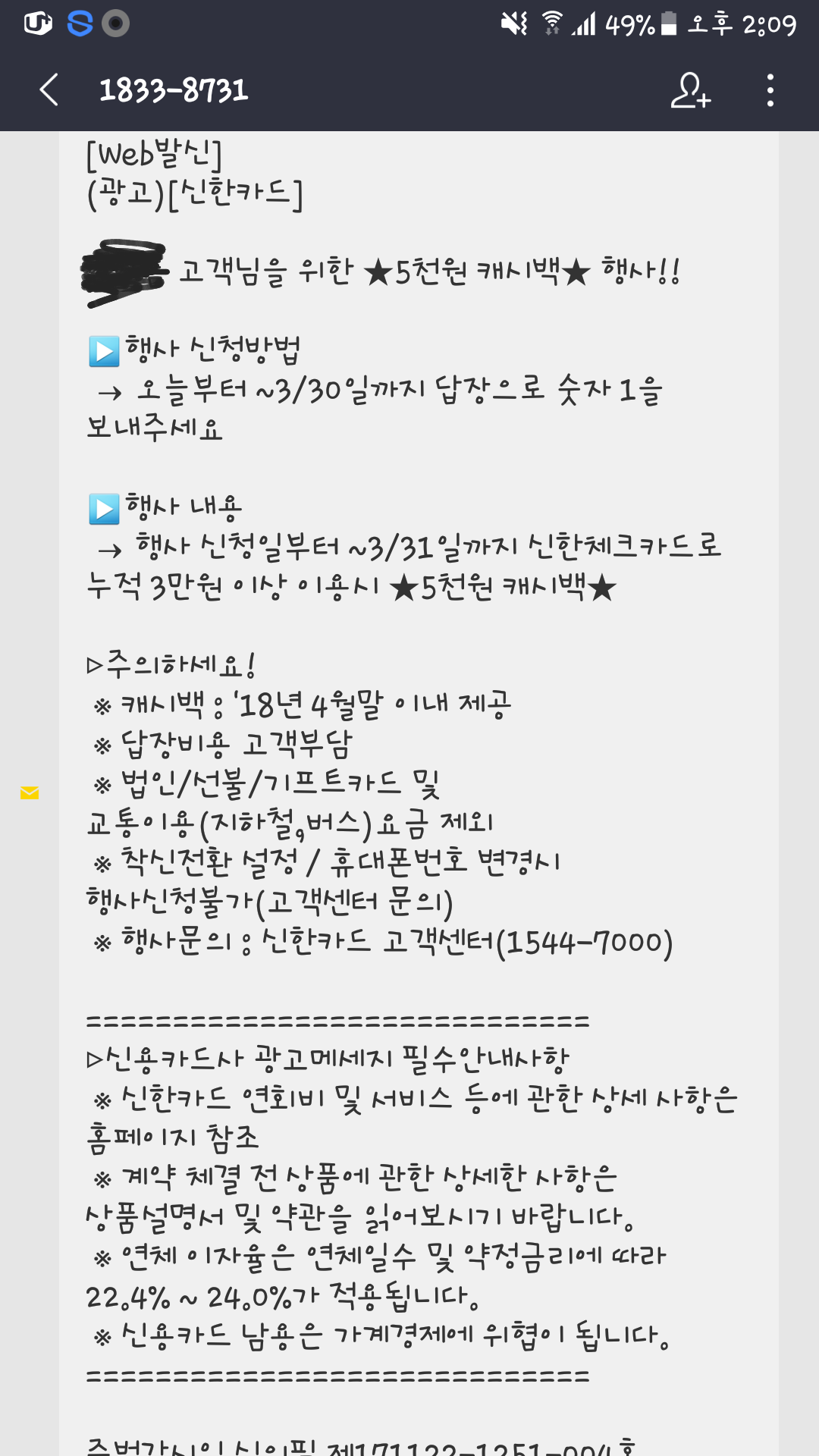 전 카드는 농협 신한뿐인데 신한에서만 가끔 오길래 ㅎㅎ 의심했네요ㅎㅎ |