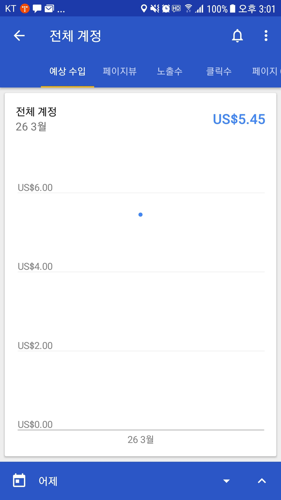 하루에 1$ 미만으로 나오는날도있구요.. 더 나오는 날도 있습니다. 노오오오오오오력하시면 누구나 가능합니다.! ^^ |