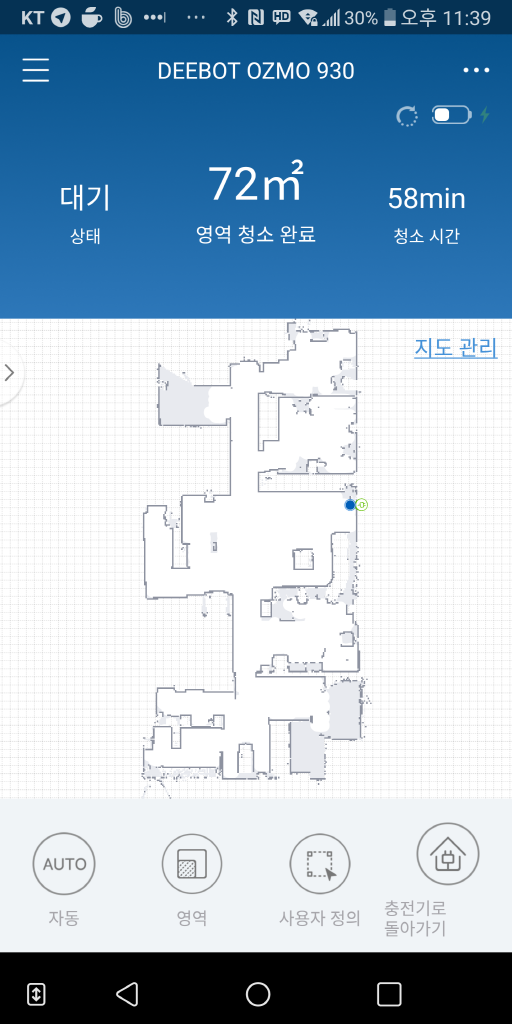 또 다른 청소옵션중 하나인 (청소옵션이 자동,영역,사용자 정의 3가지가 있습니다)