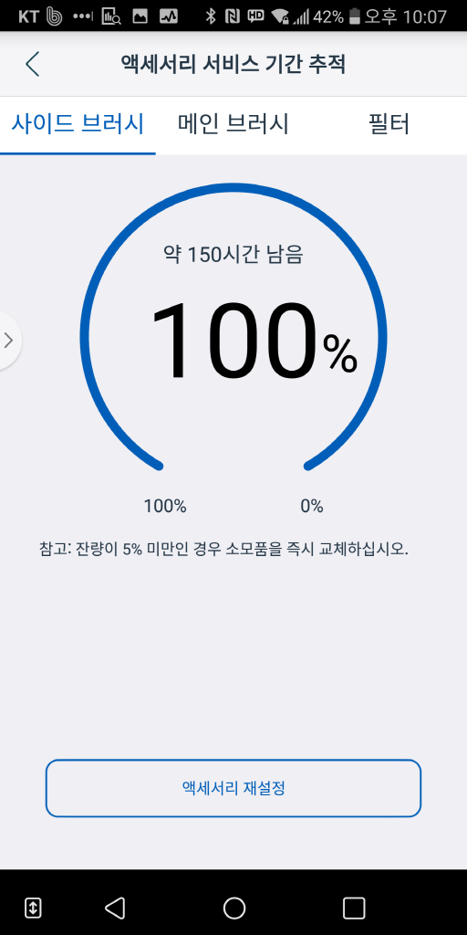 아주 친절하게도 소모품 교체시기까지 체크해줍니다.